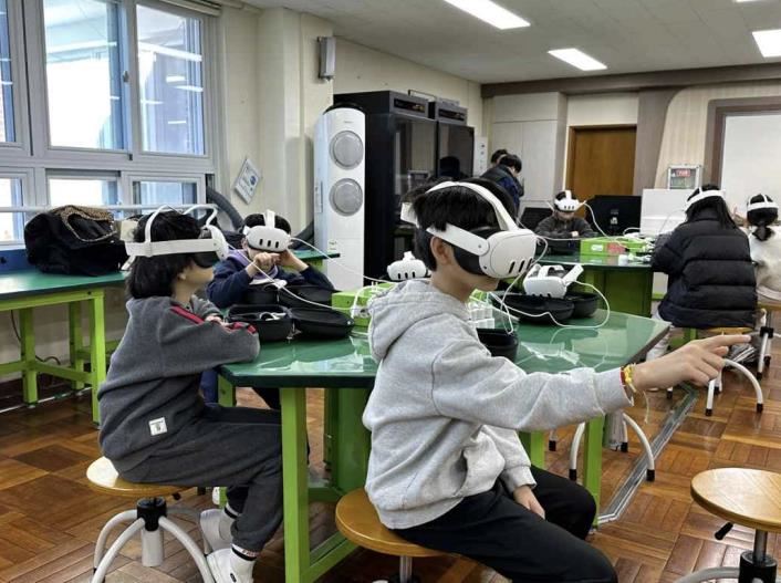 VR 통일안보교육 수업을 받고 있는 학생들.통일부 국립통일교육원