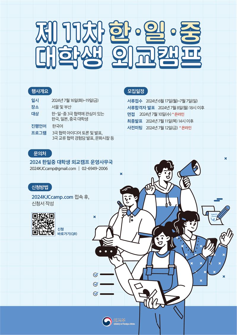 외교부는 7월 16일부터 19일까지 서울과 부산에서 제11차 한일중 대학생 외교캠프를 개최했다고 밝혔다.