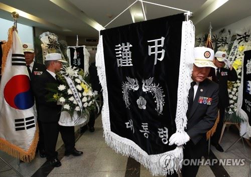 국가유공자 빈소 향하는 대통령 근조기.연합뉴스