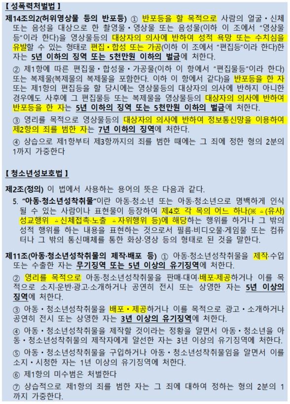 딥페이크 성범죄 주요 적용법조.경찰청
