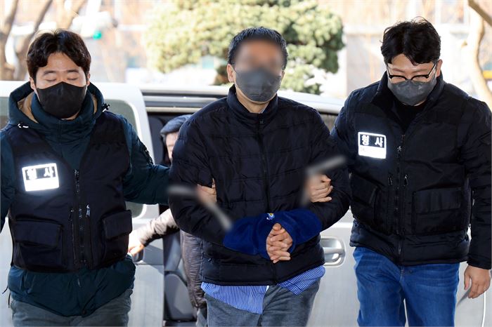서울서부지방법원 폭력 집단진입 사태 당시 판사실에 침입한 40대 남성 이모씨가 지난달 23일 오후 서울 마포구 서울서부지법에서 열린 구속 전 피의자 심문(영장실질심사)에 출석하고 있다.연합뉴스
