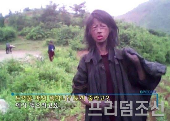 2010년 10월 KBS 스페셜에서 방영되며 전세계에 충격을 주었던 23세의 북한 꽃제비 여성. 당시 북한 내부에서 취재 활동을 벌이던 일본 아시아 프레스가 6월 평안남도에서 이 여성과 인터뷰를 해서 영상을 제공했다. 이 여성은 안타깝게도 얼마 후 옥수수밭에서 시신으로 발견되었다. 15년이 흐른 2025년 현재도 평양 특권층을 제외한 지방 북한 주민 다수가 생활고에 시달린다. 자유와 기본 인권은 당연히 누리지 못한다. 김정은은 러시아의 우크라이나 불법 침략 전쟁에 당사자 및 가족에게도 제대로 통보하지 않고 북한 군인들을 멋대로 용병으로 동원해 유럽 전쟁 총알받이로 보냈다. 초기에는 용병 동원 자체를 부인하다 사상자가 걷잡을 수 없이 늘자, 최근 김정은이 직접 전사자 100명 신원을 공개하며 애도하는 모습을 연출해 동요하는 북한 민심을 누그러뜨리려 기만하고 있다. / 사진 : KBS 화면 캡처