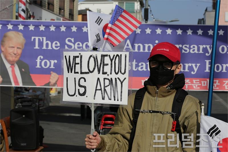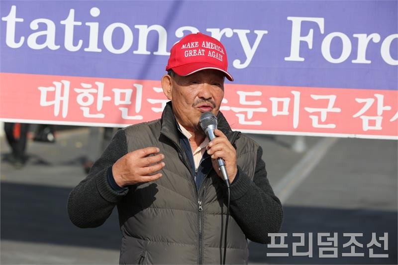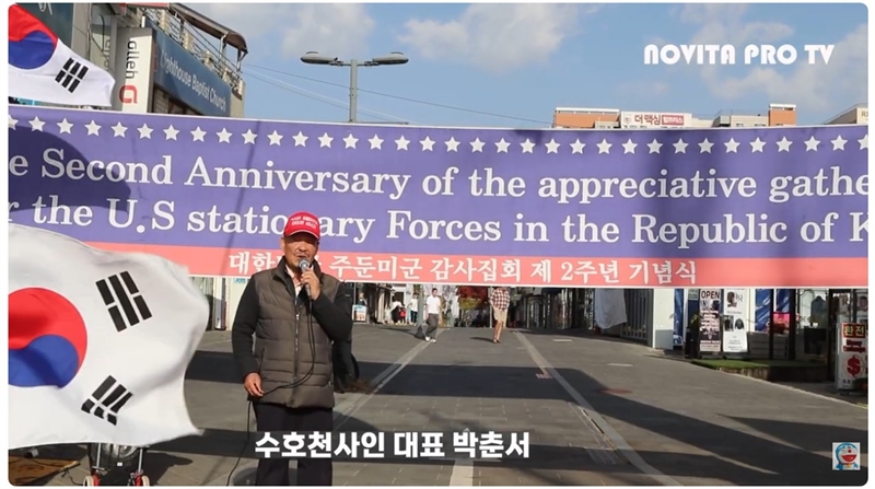 경기도 평택시 팽성읍에 위치한 '캠프 험프리스(Camp Humphreys)' 앞에서 9일 진행된 '대한민국 주한미군 주둔 감사 집회' 제2주년 기념식에서 수호천사 박춘서 대표는 연설을 통해 대한민국의 눈부신 성과와 현재 직면한 위기에 대한 국민들의 각성을 촉구했다.