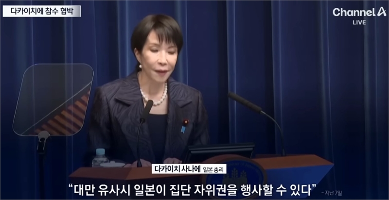 다카이치 총리는 지난 7일 국회 예산위원회에서 중국의 대만 공격 시 이를 “일본 존립 위기 사태”로 규정하고 집단적 자위권 행사 가능성을 시사했다.