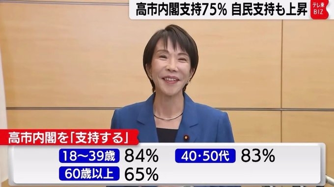 일본 다카이치 총리 지지율! 청년층에서 84%.사진=엑스 (X, 구 트위터) 게시물 캡처