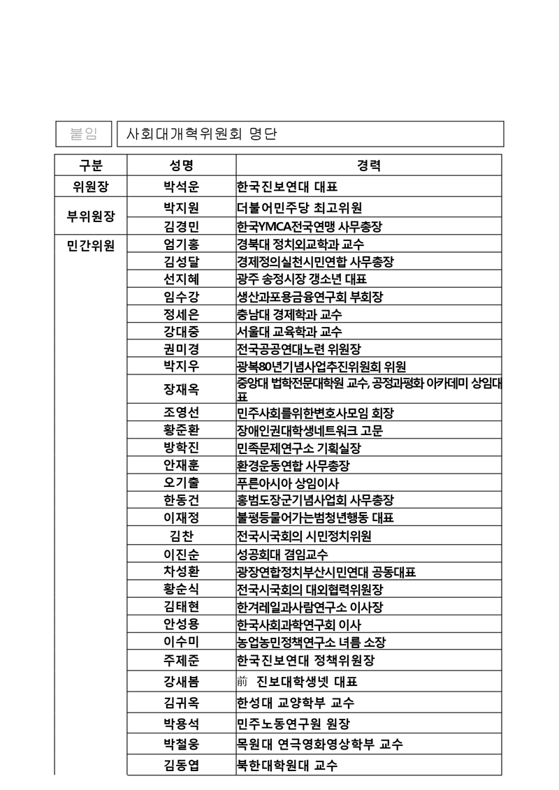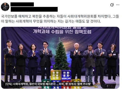 이것이 과연 국민 통합을 위한 ‘사회대개혁’을 논하는 기구인지, 아니면 특정 진영의 이념을 주입하고 정당화하려는 '정치적 거수기'인지 냉철한 비판을 피할 수 없다.