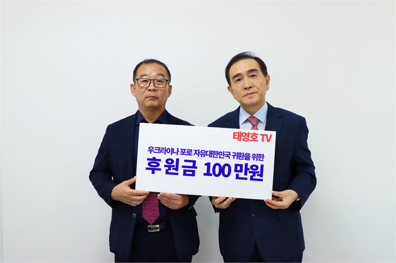 [서울 = 프리덤조선] 태영호 전 영국주재 북한 공사 겸 국민의힘 전 국회의원이 최근 우크라이나에 억류된 북한군 포로들의 자유 귀환을 돕기 위한 성금 100만 원을 기부한 사실이 알려졌다.이번 후원은 시민단체 ‘겨레얼통일연대’가 진행하는 북한군 포로 자유송환 프로젝트의 일환으로, 수용소에 남아 있는 두 명의 청년 포로들