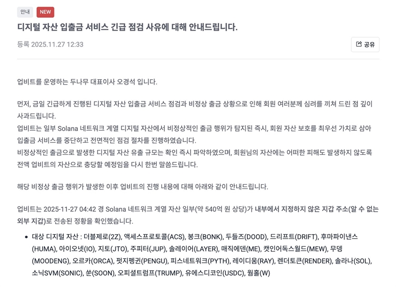 북한 라자루스, 업비트 445억 원 탈취 정황…당국 현장조사 착수