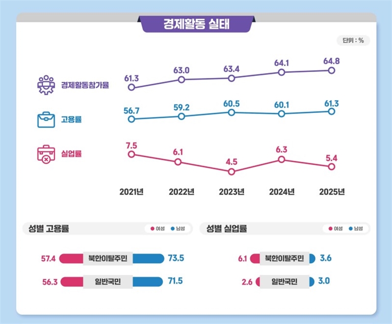 북한이탈주민 남한생활 만족도 '역대 최고' 81.2%…경제활동 지표도 개선 돋보여