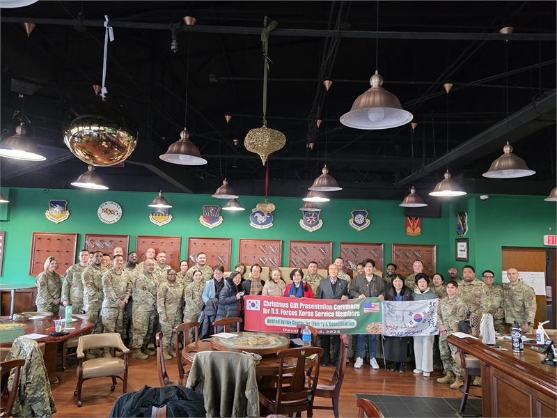 (오산 = 프리덤조선) 사단법인 자유통일문화원(이사장 김명자)과 나라사랑후원회(회장 채학철)는 12월 18일,주한미군 장병들에게 2,000여 박스의 통일약과와 메밀화장품 세트(3천200만원 상당) 크리스마스 선물 세트를 전달하는‘2025 주한미군 성탄 선물 기증식’을 개최했다. 이번 기증식은 시민들의 자발적 참여가 만