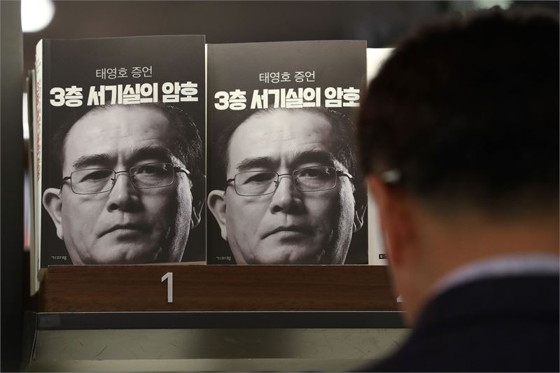 태영호 증언록 '3층 서기실의 암호'가 진열된 서가.연합뉴스