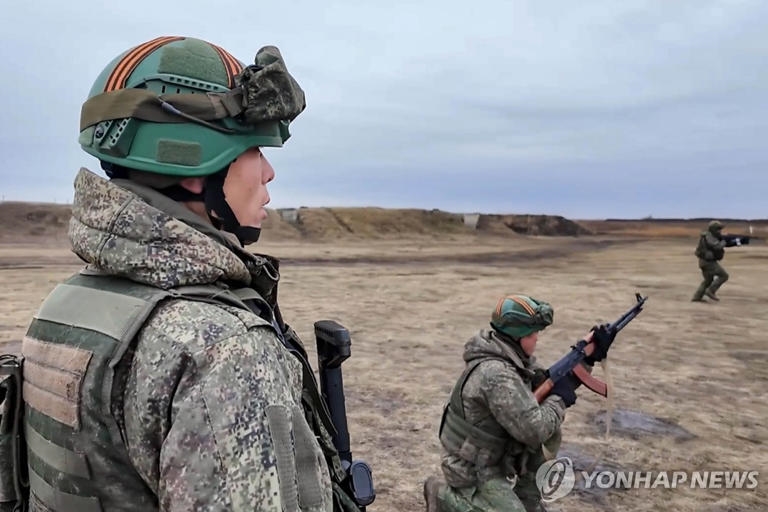 러시아 교관들로부터 훈련을 받는 북한 파병군.(사진=연합뉴스)