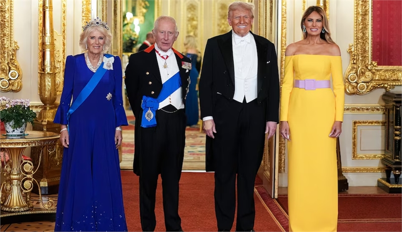 영국을 두 번째 국빈 방문해 찰스 국왕과 카밀라 왕비와 함께 한 도널드 J 트럼프 미국 대통령 및 영부인 멜라니아 트럼프. 트럼프 대통령은 영국 국빈 방문을 "내 인생의 가장 큰 영예"라고 말하며 만족감을 드러냈고, 영국에 막대한 투자를 약속했다.