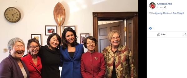 한반도 문제에 대해 이 툴시 개버드가 '뜻을 함께 한다'고 손 잡은 대상은 트럼프 대통령과 달리, 대한민국이 아니라 북한과 더 가까운 세력이다. 힌두교도이자 하와이가 기반인 툴시 개버드 현 미국 국가안보국장의 경우는 같은 하와이의 위민크로스 DMZ 크리스티나 안(Christine Ahn)과 오랜 친분이 있는 것으로 확인됐다.