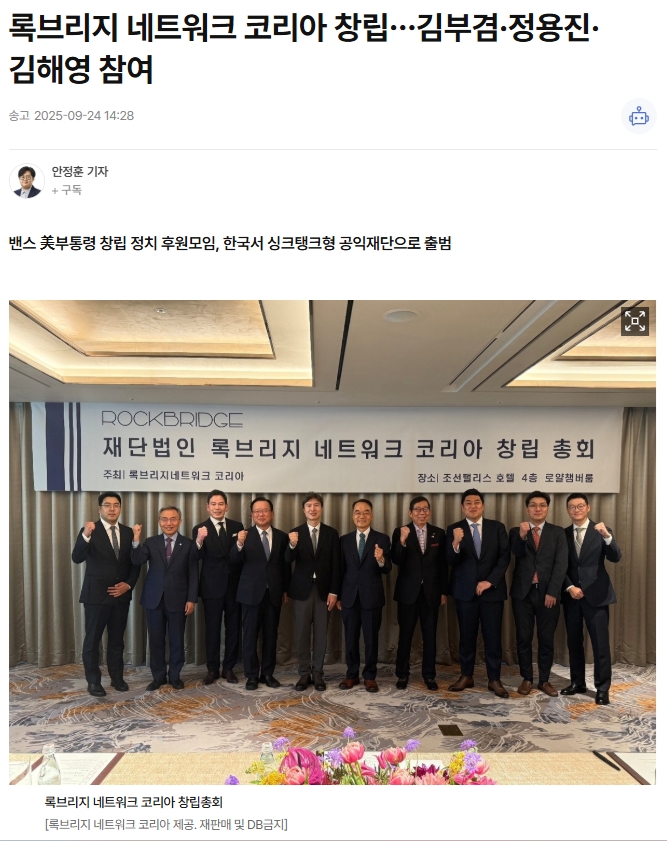 차기 미국 대통령으로 밴스 부통령을 지지한다는 록브리지 네트워크 한국 상륙
