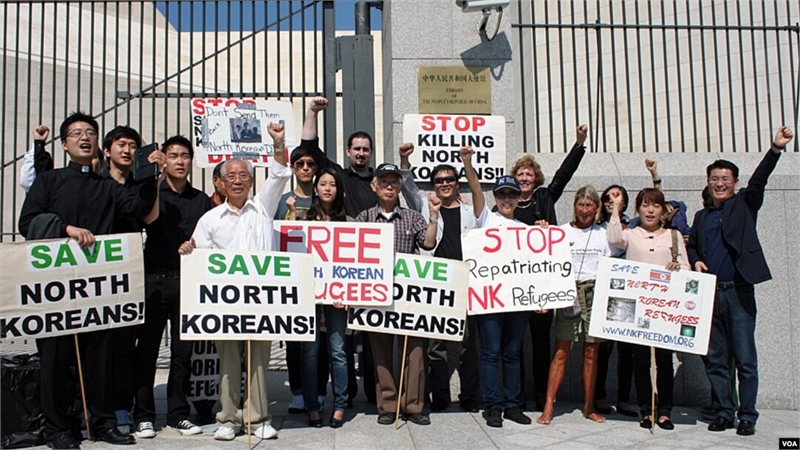 世界人権運動家たちが脱北者救出を訴えている。 /写真=VOAホームページキャプチャ