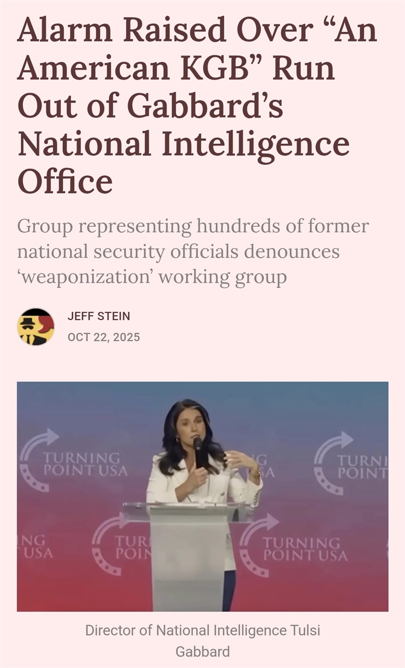 전직 관료들은 “정보기관이 국가 안보가 아닌 정치적 보복을 목적으로 활용될 경우, 그 결과는 미국판 KGB의 등장”이라며 의회의 신속한 조치를 촉구하고 있다.