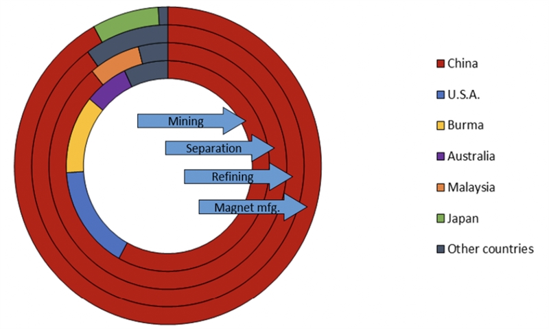 현재 일본은 희토류 대부분을 중국에 의존하는 상황이다.